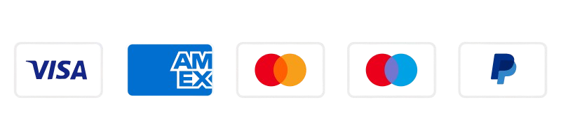 Nous acceptons les paiements par Visa, MasterCard, Maestro, American Express et PayPal